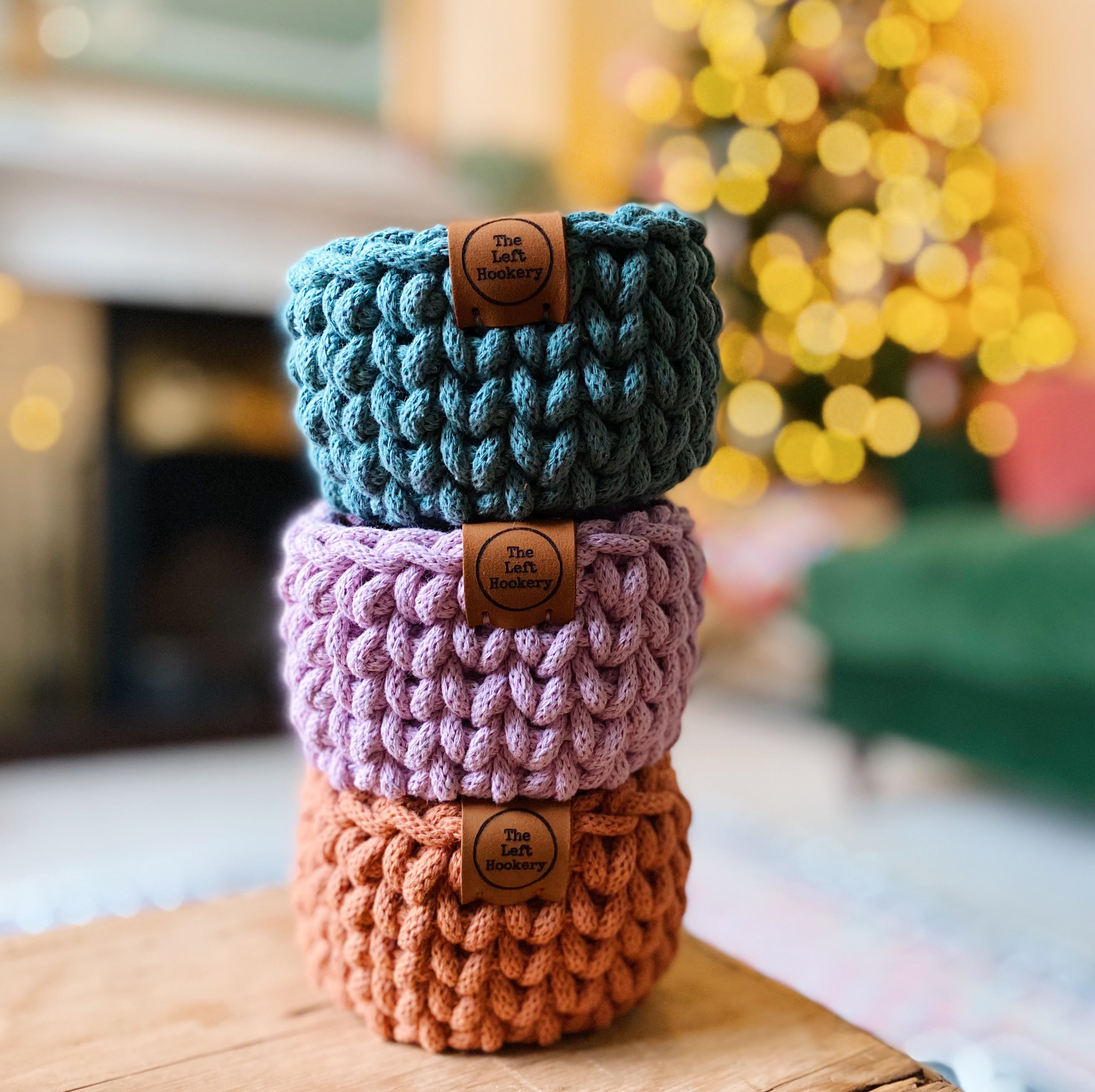 modern crochet baskets, bags & kits, designed and handmade in our north devon studio