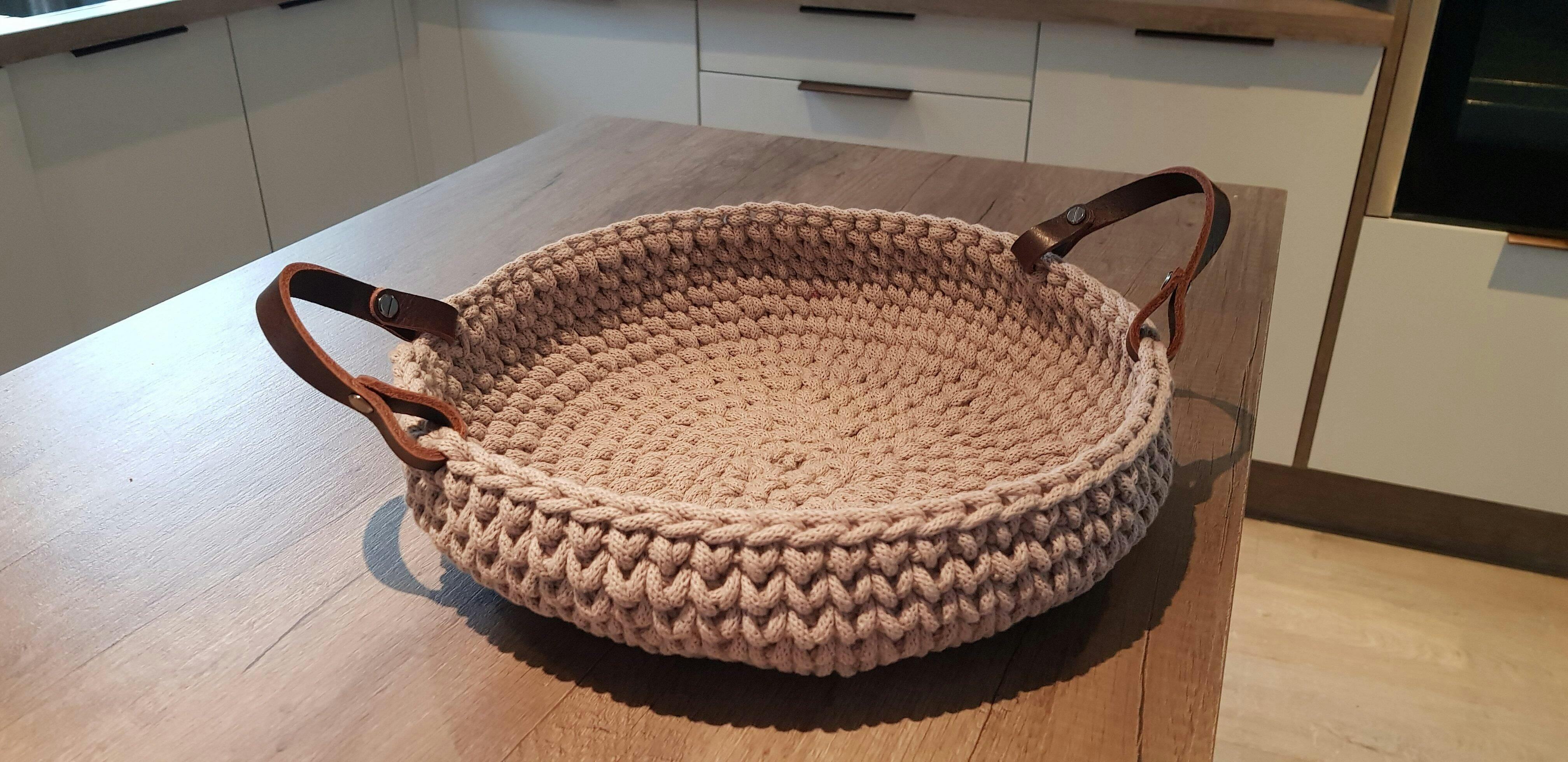 I got the kit at the Harrogate Knit and stitch. Really pleased with it. Easy to do, I'm a beginner, only leant to crochet this year. It is hard on the hands because its cord, but it makes a brilliant sturdy basket and is quick to make. The instructions were clear and easy to follow. I did end up with a few extra stitches at the end, but crochet like this is very forgiving and the bowl looks great. I'm going to use it for fruit. I need to make another one now as my cat loves it and it fits her perfectly.