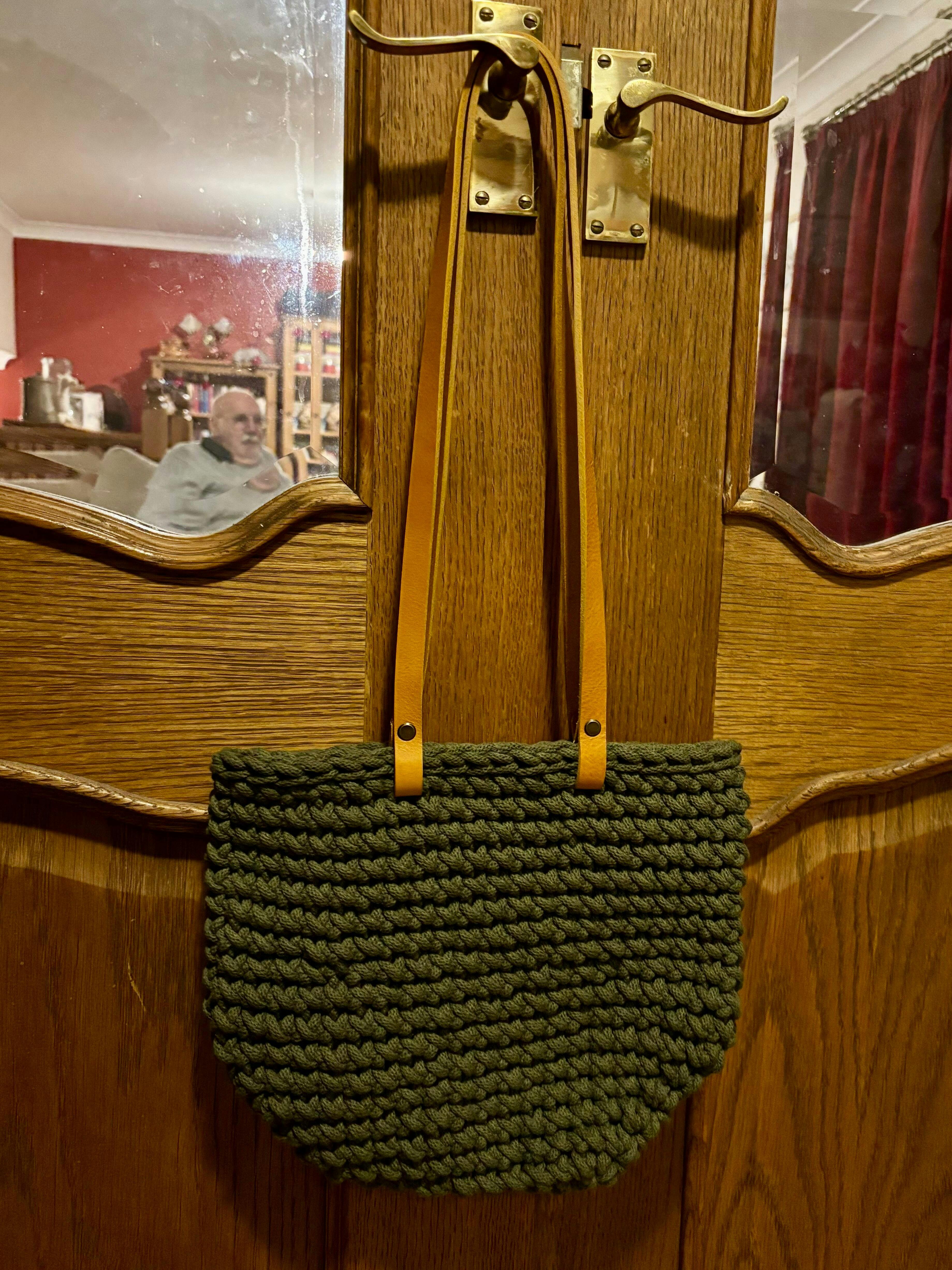 The kit is available in a variety of bright colours and has all the tools and materials you will need to make a colour pop crochet bag with a reclaimed leather handle.
