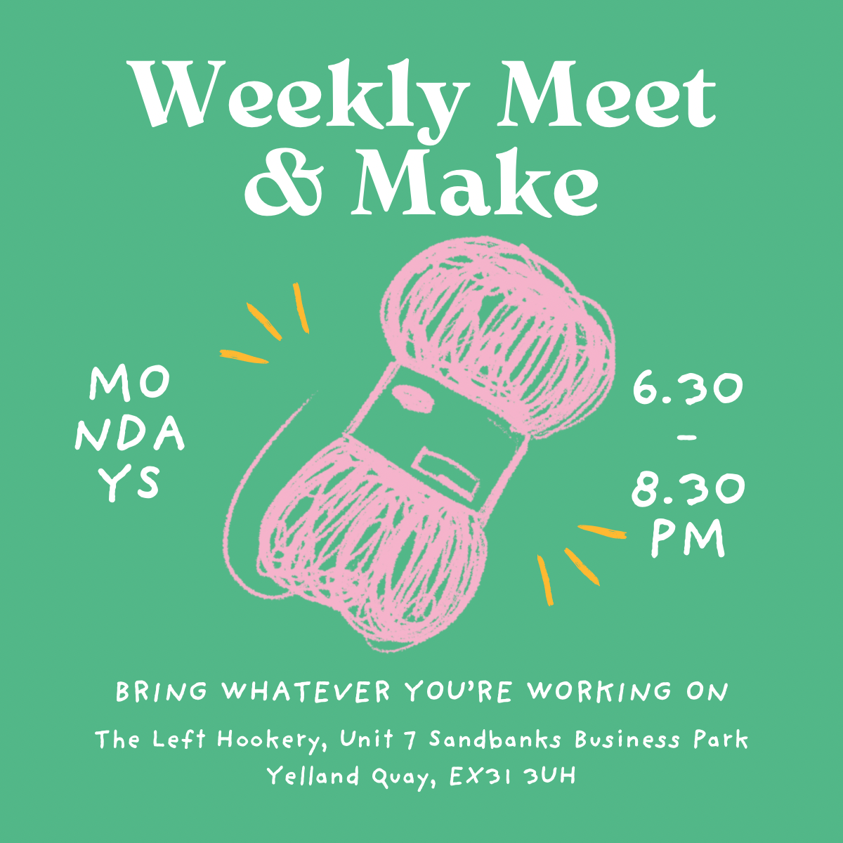 Join us at The Left Hookery, Sandbanks Business Park, for our new evening Meet & Make!